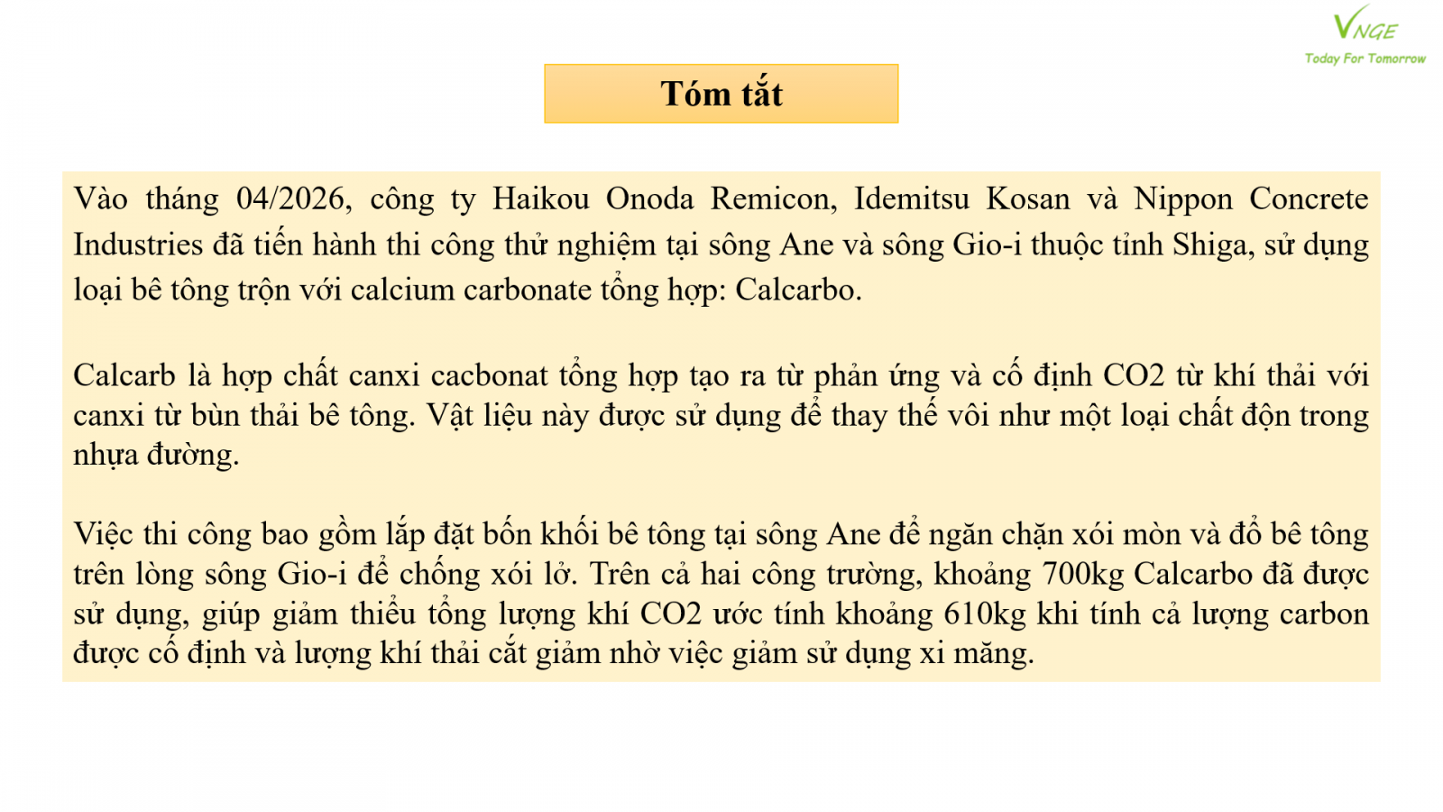 Dự án Bê tông Cố định CO2 tại Nhật Bản
