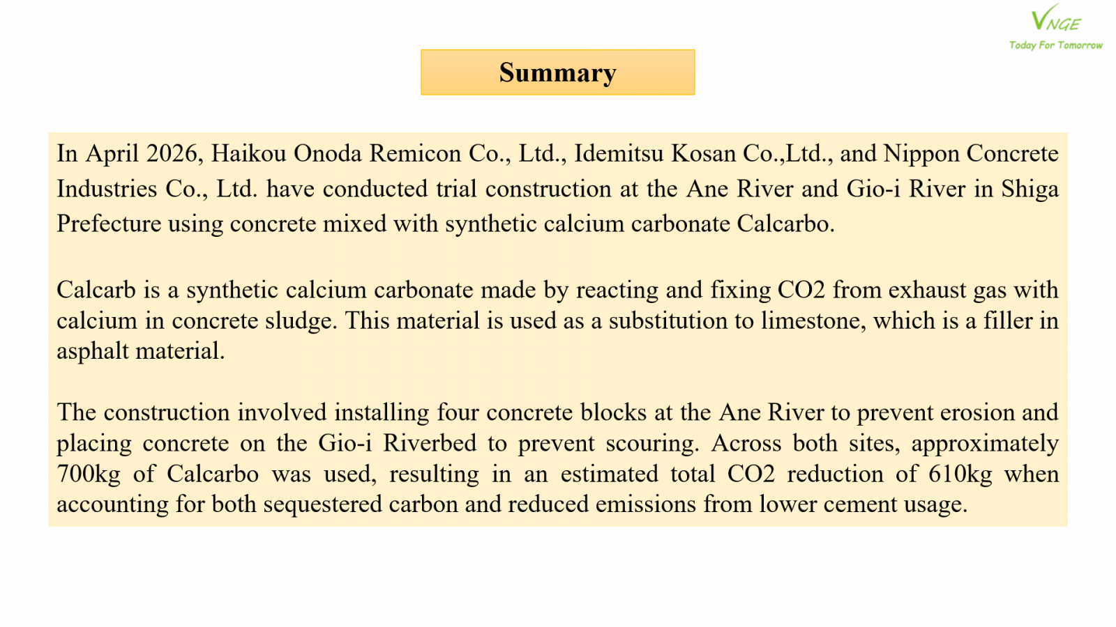CO2-Fixed Concrete Project in Japan