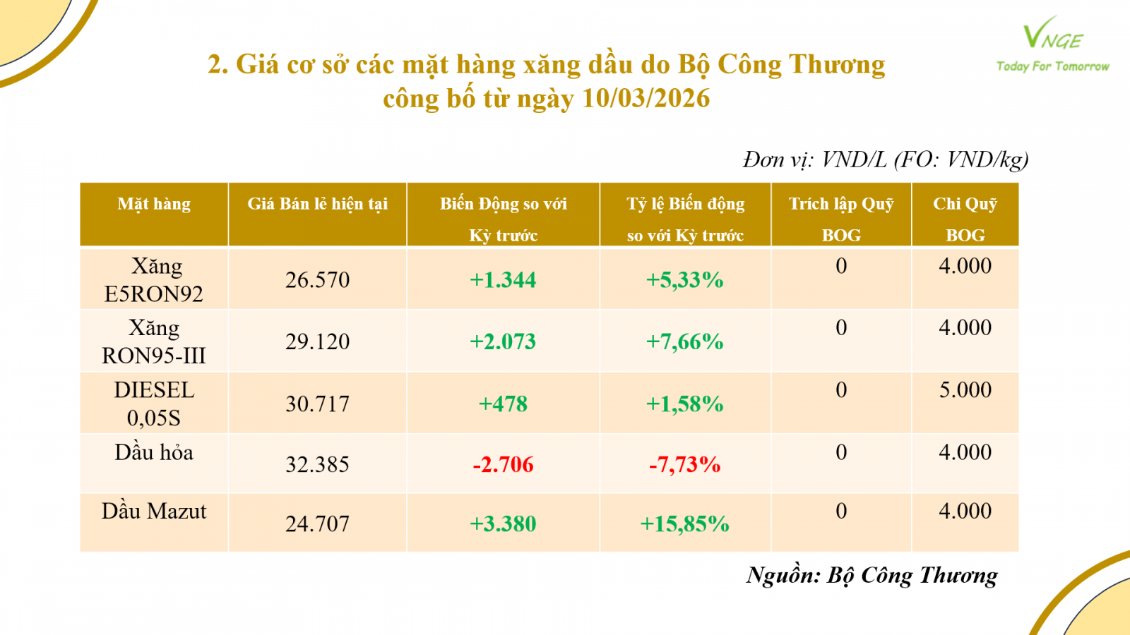 ĐIỀU CHỈNH GIÁ XĂNG DẦU NGÀY 10 THÁNG 3 NĂM 2026