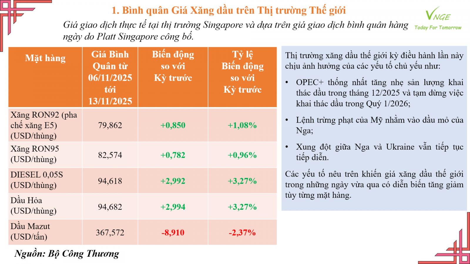 ĐIỀU CHỈNH GIÁ XĂNG DẦU NGÀY 13 THÁNG 11 NĂM 2025