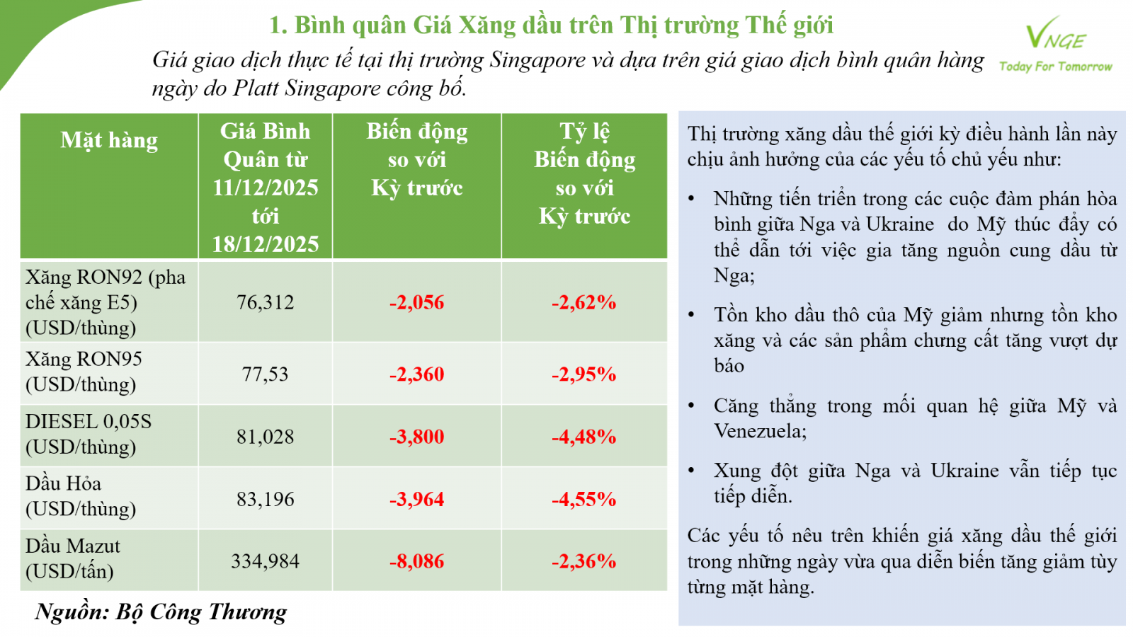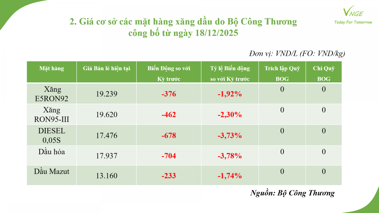 ĐIỀU CHỈNH GIÁ XĂNG DẦU NGÀY 18 THÁNG 12 NĂM 2025