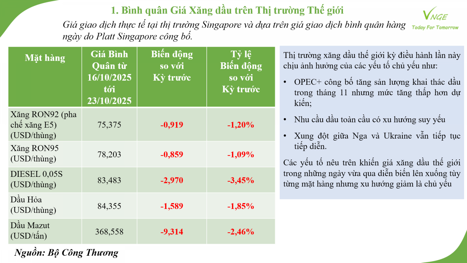 ĐIỀU CHỈNH GIÁ XĂNG DẦU NGÀY 23 THÁNG 10 NĂM 2025