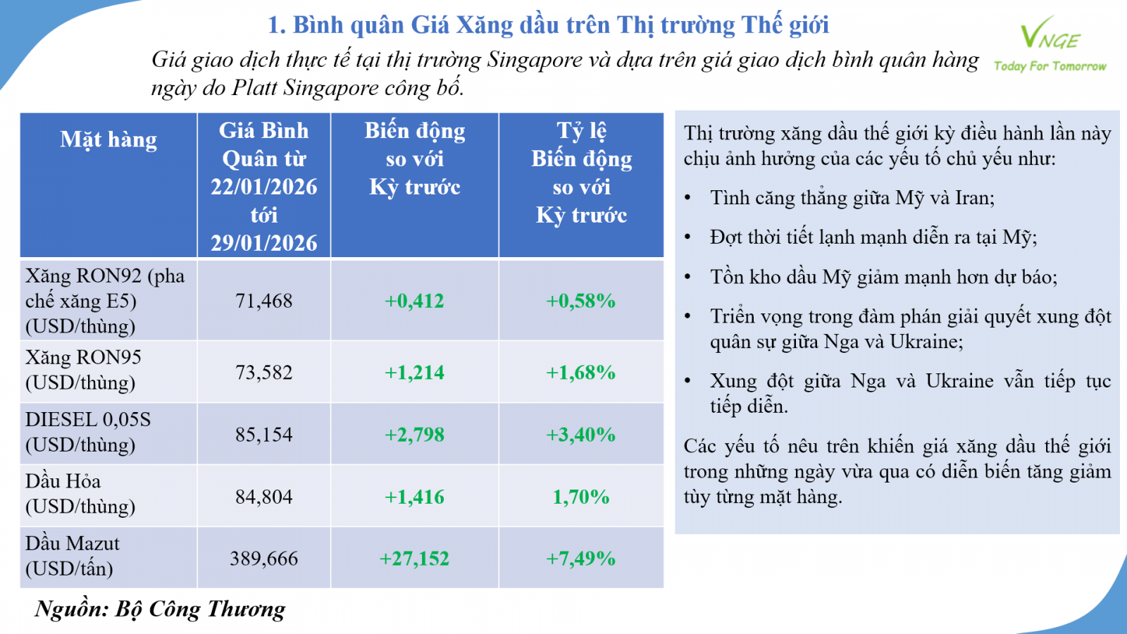 ĐIỀU CHỈNH GIÁ XĂNG DẦU NGÀY 29 THÁNG 1 NĂM 2026