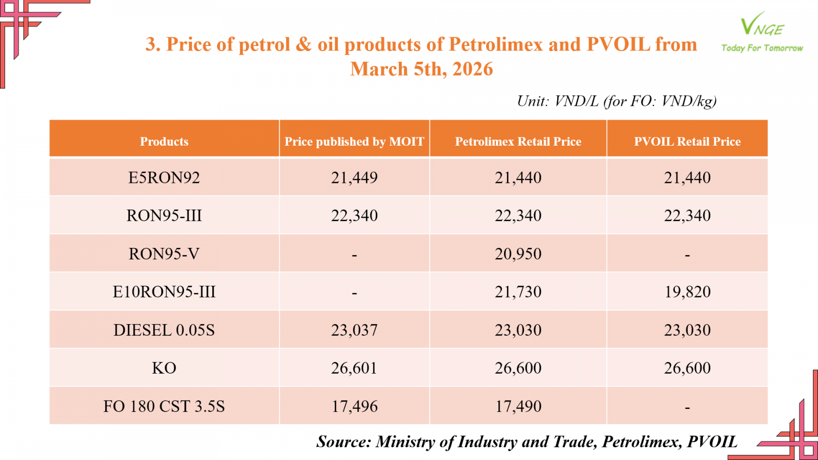 PETROL & OIL RETAIL PRICE ADJUSTMENT FROM MARCH 5 2026